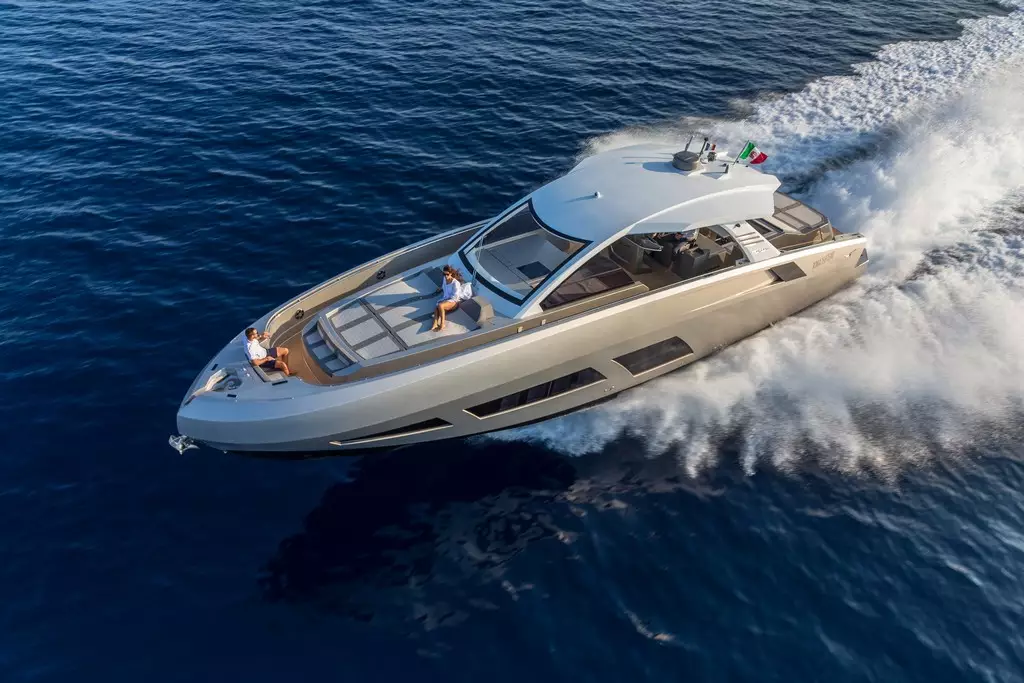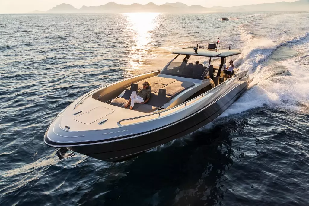 This impressive vessel can reach speeds of 50 knots and is available with three different power packages. Hull #1, which will be based in the Gulf of Saint-Tropez, is currently being built in the triple engine configuration.